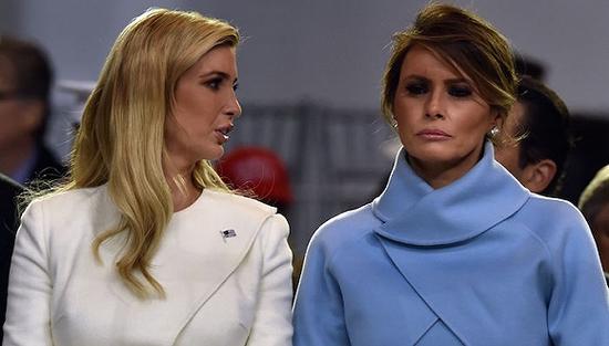 1月20日,特朗普女兒伊萬卡(左)和第一夫人梅拉尼亞(右)在總統(tǒng)就職典禮上。