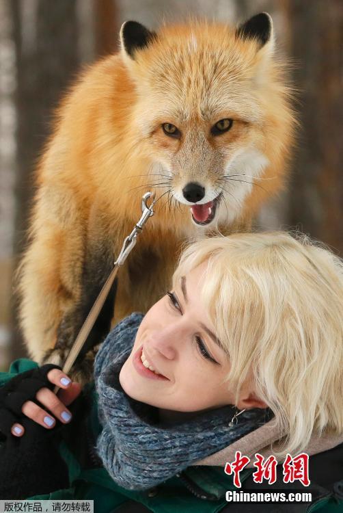 2月8日,俄羅斯克拉斯諾亞爾斯克Royev Ruchey動(dòng)物園,一位動(dòng)物園員工正在訓(xùn)練11個(gè)月大的紅狐貍。這是該動(dòng)物園馴養(yǎng)野生動(dòng)物計(jì)劃的一部分。