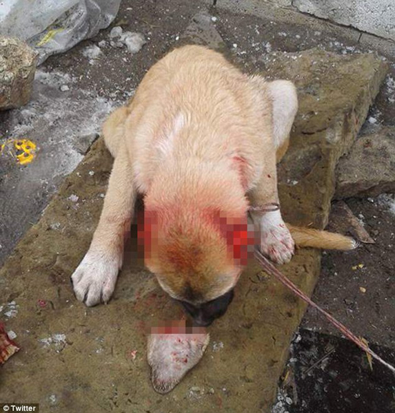 在相關(guān)照片中,2名男子分別拿著狗狗的一只耳朵,一臉的滿(mǎn)不在乎和冷漠。而身上沾滿(mǎn)血跡、痛苦不堪的狗狗只能原地哀嚎,飽受折磨。這殘忍血腥的一幕令觀者心碎。