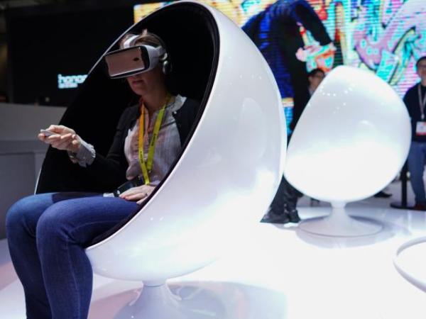 2017年1月5日,在美國拉斯維加斯消費電子展上,參觀者使用華為手機體驗虛擬現(xiàn)實技術(shù)。(新華社記者楊磊攝)