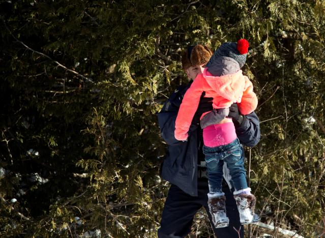 難民兒童被加拿大騎警抱過邊境 美國警察“懵了”