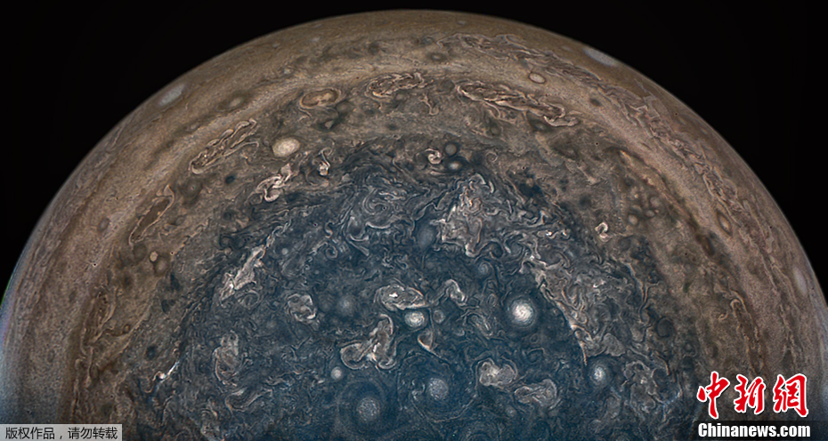 近日,NASA公布了一張木星南極的圖像,這張圖像由“朱諾”號木星探測器拍攝!爸熘Z”在飛越木星南極時,于云頂上方101000千米處記錄了這幅令人驚嘆的畫面。