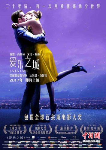 這部電影講述一位爵士樂鋼琴家與一名懷揣夢想的女演員之間的愛情故事,由于近幾年好萊塢鮮少出精彩的歌舞類電影,加上該片對愛情的煽情解讀,《愛樂之城》在北美獲得1.36億美元的票房佳績。