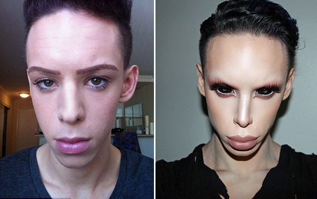 他從17歲開(kāi)始豐唇,之后又做了兩次隆鼻和墊額頭等手術(shù)。作為一個(gè)兼職模特,他通常戴著黑色的隱形眼鏡,并配以不同尋常的指甲顏色和發(fā)色。文尼說(shuō):“我希望自己的外在能和我自己內(nèi)心感覺(jué)是一致的,我想成為混合體,既不是男性也不是女性!