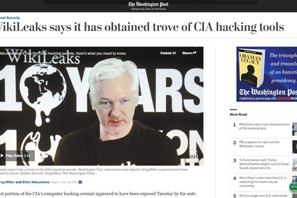 《華盛頓郵報(bào)》7日?qǐng)?bào)道:“維基解密稱(chēng)已掌握中情局黑客攻擊的工具箱!