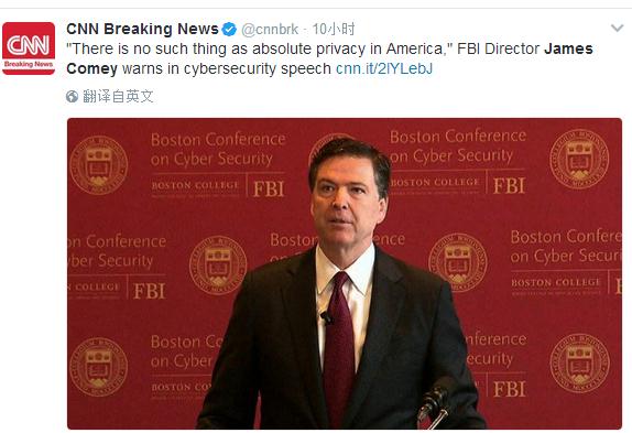 美國有線電視新聞網(wǎng)3月8日報道稱,科米8日出席由FBI與波士頓學(xué)院(Boston College)共同舉辦的首屆波士頓網(wǎng)絡(luò)安全會議。他在會中談到,自從2013年前國安局雇員斯諾登爆料國家安全機構(gòu)監(jiān)聽民眾之后導(dǎo)致各界關(guān)注的計算機加密問題。他認(rèn)為美國人不應(yīng)該期待擁有絕對隱私,“在美國是沒有絕對隱私可言,也沒有逍遙法外之處!