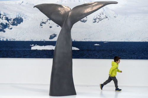 博物館的內(nèi)部則是一片白雪的世界,展示有關(guān)極地生態(tài)的照片、影片及標(biāo)本等,引起人們對南北極的關(guān)注。