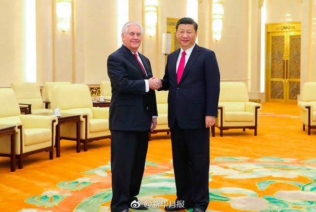 習(xí)近平請(qǐng)蒂勒森轉(zhuǎn)達(dá)對(duì)特朗普總統(tǒng)的問候,并歡迎特朗普總統(tǒng)來華訪問。