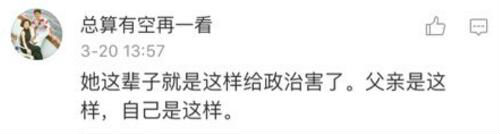 “她這輩子就是這樣給政治害了,父親是這樣,自己是這樣!痹谖⒉┥险?wù)撨@位“悲情女總統(tǒng)”時(shí),有網(wǎng)友唏噓地說。