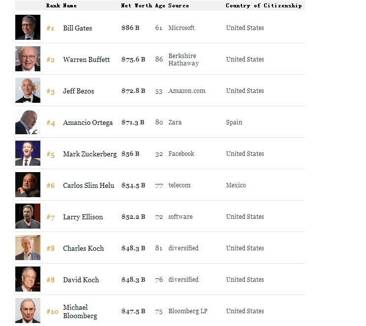 《福布斯》指出,2016年對(duì)于全球頂級(jí)富豪來(lái)說(shuō)是一個(gè)破記錄的一年,億萬(wàn)富翁人數(shù)增加13%,從1810名增加到2043名。億萬(wàn)富翁人數(shù)首次超過(guò)2000人。全球富豪總資產(chǎn)增長(zhǎng)18%,達(dá)到7.67萬(wàn)億美元,刷新歷史紀(jì)錄。但美國(guó)仍然是世界上億萬(wàn)富翁最多的國(guó)家,目前為565人,而一年前則為540人。