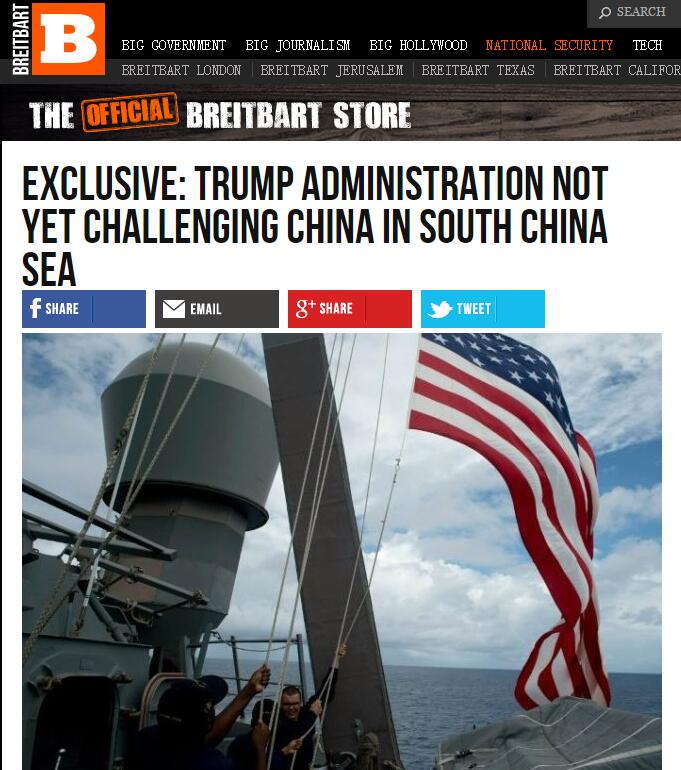 據(jù)美國(guó)媒體布賴特巴特新聞網(wǎng)當(dāng)?shù)貢r(shí)間3月24日?qǐng)?bào)道稱,美國(guó)海軍近期已多次提出在南海“自由航行”,但特朗普政府仍未同意。