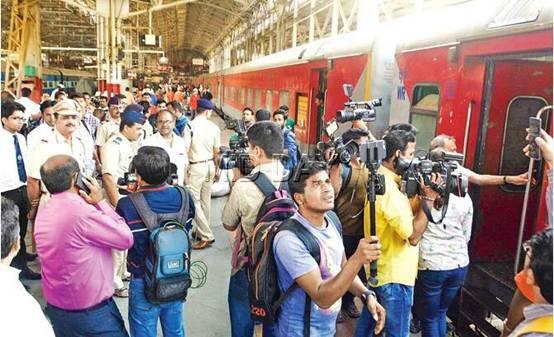 25日上午,印度記者在孟買火車站圍堵蓋克瓦德