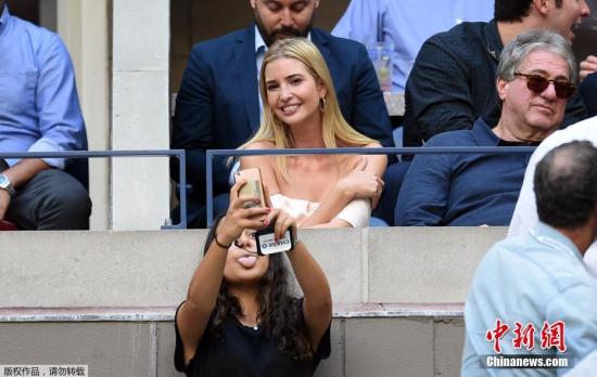 資料圖:伊萬卡看球賽微笑配合粉絲自拍。