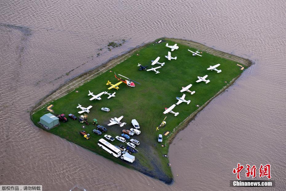 當?shù)貢r間4月1日,熱帶氣旋“黛比”持續(xù)襲擊澳大利亞,在新南威爾士北部城市利斯莫爾,洪水淹沒了建筑和街道。圖為飛機停放的高地在洪水中猶如孤島。