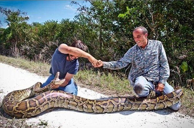 美捕蛇人捕獲4.5米長64千克重巨蟒