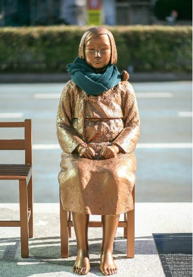韓國(guó)民間團(tuán)體在日本駐韓國(guó)釜山總領(lǐng)館前豎立的“慰安婦”少女像