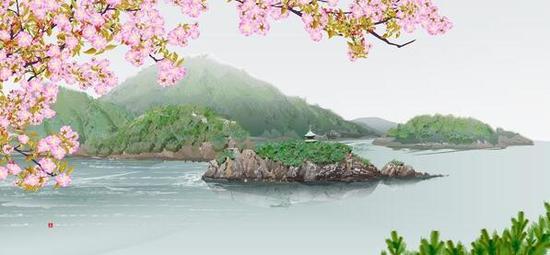 這位老爺爺名叫堀內(nèi)辰男。他的作品有櫻花、紅葉等日本元素,也有四季風景,每一幅畫作都非常精美,引起了日本國內(nèi)外的關注。