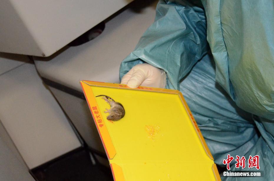 4月9日,四川出入境檢驗(yàn)檢疫局對(duì)媒體通報(bào):日前,該局接到報(bào)告稱,由美國(guó)洛杉磯飛往國(guó)內(nèi)中轉(zhuǎn)至成都雙流國(guó)際機(jī)場(chǎng)的航班客艙內(nèi)發(fā)現(xiàn)活鼠,檢疫人員隨后開(kāi)艙檢查,發(fā)現(xiàn)客艙頭等艙右側(cè)艙門(mén)角落處一塊粘鼠板上粘住一只小鼠,身長(zhǎng)約6-7厘米,已經(jīng)死亡。 鐘欣 攝