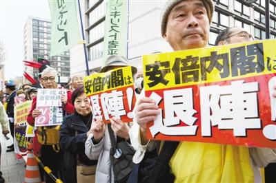 日本民眾日前在位于東京的國(guó)會(huì)大樓外手舉標(biāo)牌集會(huì)示威,譴責(zé)安倍政府政策,并要求安倍辭職。