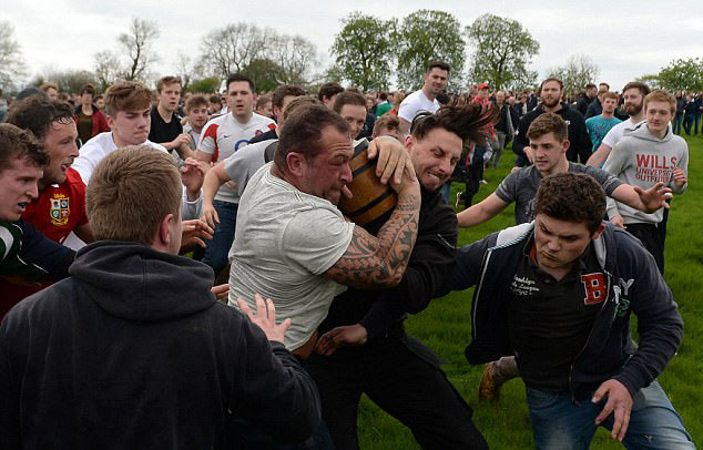 英國(guó)萊斯特郡的踢瓶子比賽。通常村民們都會(huì)去萊斯特郡上的哈勒頓參加一年一度的踢瓶子比賽。