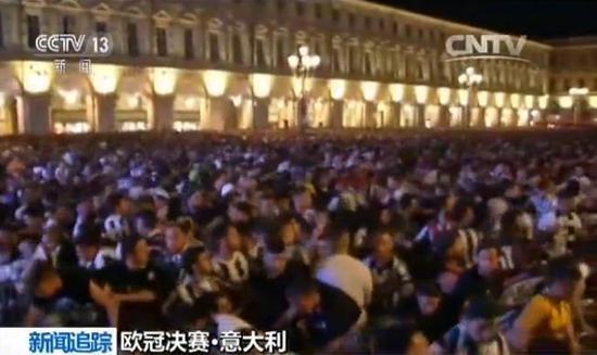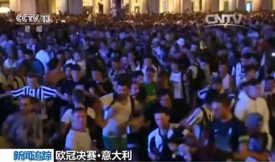 當(dāng)晚,都靈市中心的圣卡洛廣場聚集了大批尤文的球迷。人們通過廣場上的大屏幕觀看比賽直播。