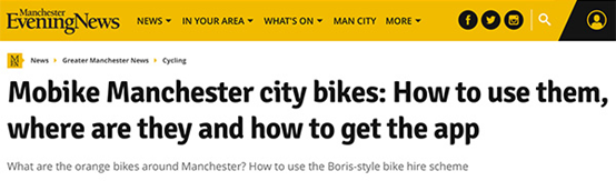 曼城當?shù)孛襟w《曼徹斯特晚間新聞》則很貼心地發(fā)布了一篇題為《摩拜曼徹斯特城市單車:怎么用,在哪找,如何下載》的文章,幫助市民快速上手。