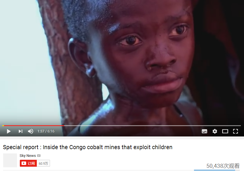 多森和理查德是一家英國(guó)媒體攝制的視頻中的人物。大雨磅礴,他們?cè)趧偣?金)鈷礦區(qū)勞作,用孱弱的肩膀扛起裝滿礦石的麻袋;他們蹲在地上,用臟兮兮的小手篩選礦石……像他們這樣的“童工”沒(méi)有鞋,沒(méi)有任何保護(hù)措施,最小的4歲。悲慘的不止孩子,還有人因喝了被污染的水喉嚨上長(zhǎng)了腫瘤。