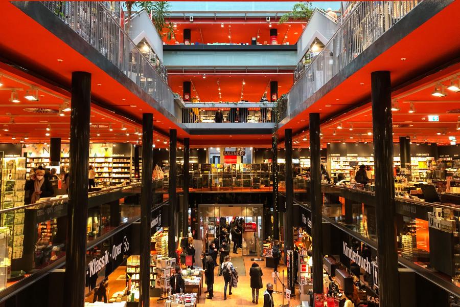 首都柏林市中心有一家名為“杜斯曼”的大型書(shū)店,上下五層,營(yíng)業(yè)面積超過(guò)7300平方米。書(shū)店藏書(shū)眾多,品類豐富,規(guī)模號(hào)稱德國(guó)最大,又緊鄰菩提樹(shù)下大街等著名景點(diǎn),是很多當(dāng)?shù)厝撕陀慰偷谋氐酱蚩ǖ亍?/p>