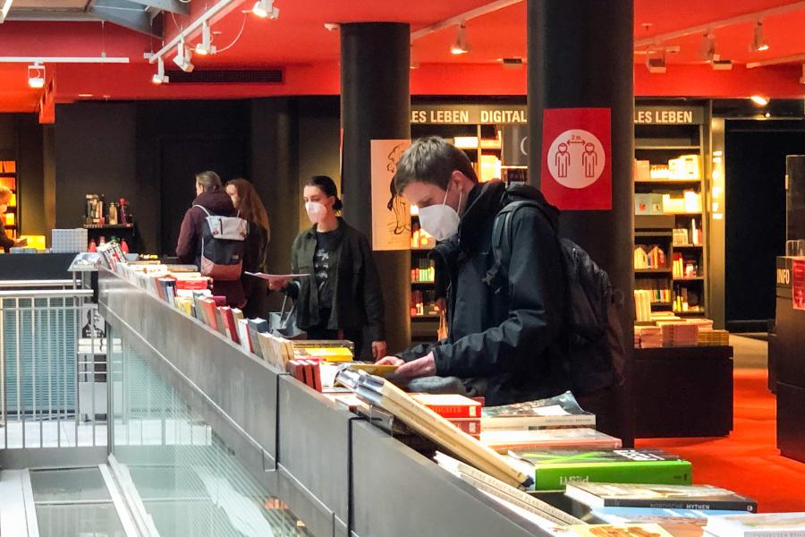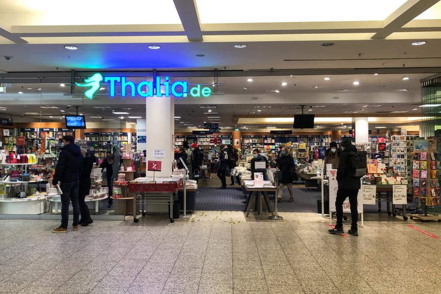 去年12月中旬,德國(guó)啟動(dòng)“全面封鎖”前,杜斯曼書(shū)店門(mén)前排起長(zhǎng)隊(duì),記者等了二十多分鐘才進(jìn)入店內(nèi)。一問(wèn)才知,很多人都擔(dān)心書(shū)店關(guān)門(mén),于是抓緊時(shí)間多買(mǎi)一些書(shū)。