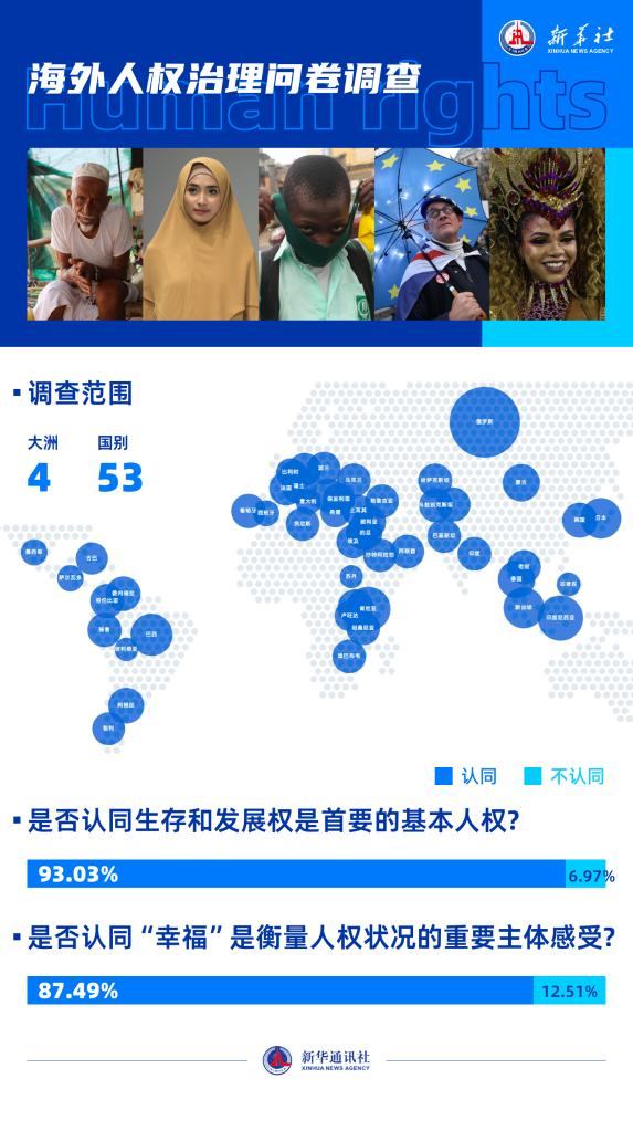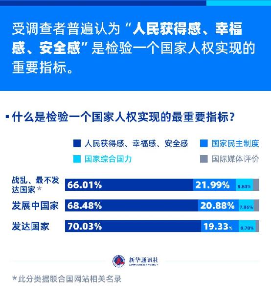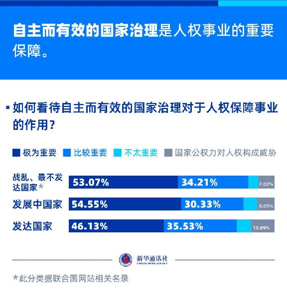 新華社這次問卷調(diào)查中,關(guān)于“自主而有效的國家治理對于人權(quán)保障的作用”,分別有超過52%和30%的受訪者選擇了“極為重要”或“非常重要”。