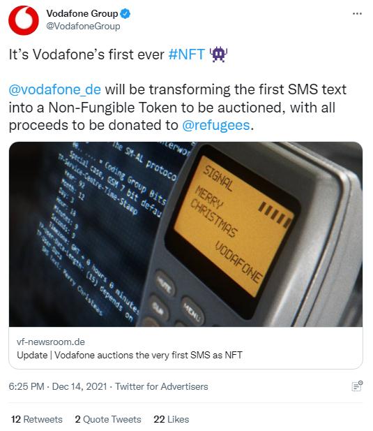 英國沃達豐公司表示,計劃將拍賣所得全部捐贈給聯(lián)合國難民署,以支持那些被迫逃離家園的人。(圖片來源:英國沃達豐公司社交媒體截圖)