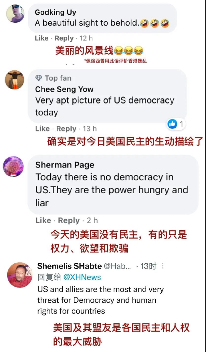 這場鬧劇將美國的黨派斗爭和由此引發(fā)的民眾對立推向高潮,如同一記鐵拳,無情粉碎了美國精心營造的“民主”人設(shè)。