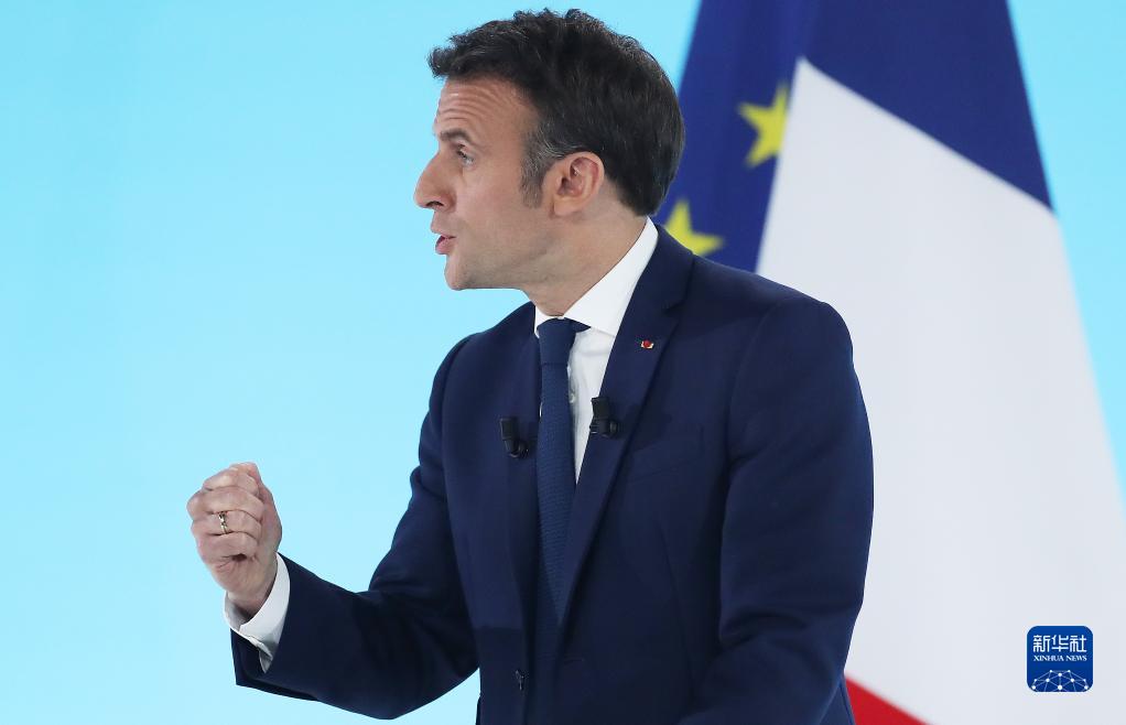 4月10日,法國總統(tǒng)馬克龍在巴黎參加總統(tǒng)選舉首輪投票后的集會。新華社記者 高靜 攝