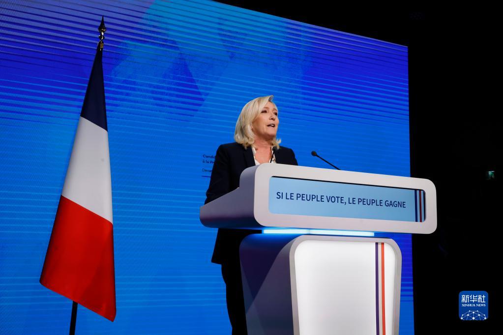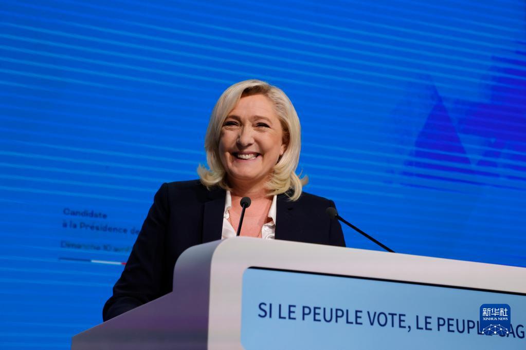 4月10日,法國極右翼政黨“國民聯(lián)盟”候選人瑪麗娜·勒龐在巴黎參加總統(tǒng)選舉首輪投票后的集會。新華社發(fā)(里特·艾斯攝)