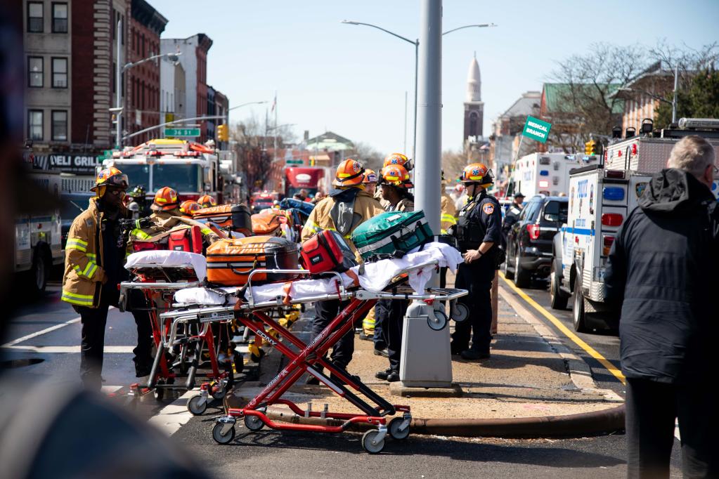 4月12日,救護(hù)人員在美國(guó)紐約發(fā)生槍擊的地鐵站附近工作。紐約市布魯克林區(qū)地鐵站12日早上發(fā)生一起槍擊事件,造成多人受傷。新華社發(fā)(郭克攝)