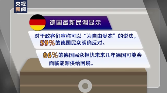 德國最新民調(diào)顯示,對于政客們宣稱民眾冬天要降低取暖器溫度,所謂“為自由受凍”的說法,59%的德國民眾明確反對。此外,86%的德國民眾擔憂未來幾年德國可能會面臨能源供給困境。
