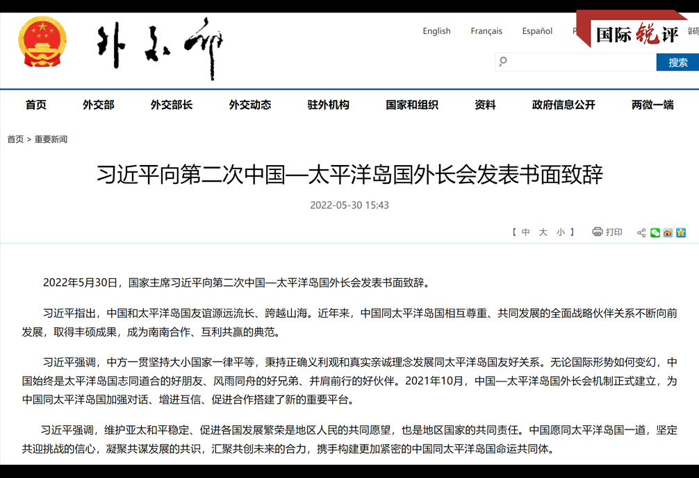 當(dāng)天,在斐濟(jì)舉行的這場外長會達(dá)成多項(xiàng)重要共識,見證了中國與相關(guān)國家關(guān)系的蓬勃生命力。中方宣布,愿打造同島國合作的“六個新平臺”。會后發(fā)表的中國關(guān)于同太平洋島國相互尊重、共同發(fā)展的立場文件,提出了一系列合作愿景,為中國同島國合作注入新動力。