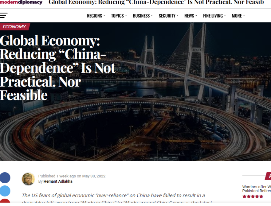 中國日報網(wǎng)6月7日電 歐洲《現(xiàn)代外交》網(wǎng)站近日發(fā)表題為《全球經(jīng)濟(jì):減少“中國依賴”不切實(shí)際也不可行》的文章,作者是著名印度漢學(xué)家、尼赫魯大學(xué)教授海孟德·阿德拉卡(Hemant Adlakha)。