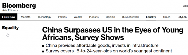 彭博社:調(diào)查顯示,中國(guó)在非洲年輕人眼中已超越美國(guó)