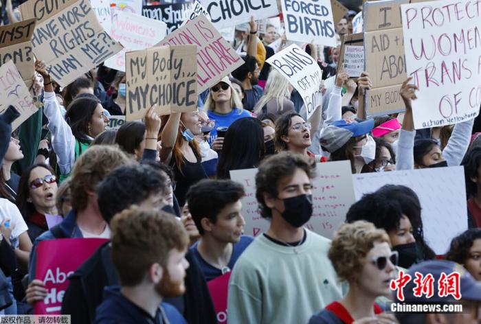 當地時間6月24日,美國聯邦最高法院推翻確立墮胎權的判例“羅訴韋德案”后,美國民眾舉行抗議活動。