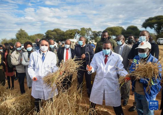 當(dāng)天,中國(guó)駐博茨瓦納大使王雪峰同博代總統(tǒng)措霍瓦內(nèi)一起走進(jìn)水稻試驗(yàn)田,拿起鐮刀收割水稻,共同分享豐收喜悅。兩人還就加強(qiáng)兩國(guó)農(nóng)業(yè)合作進(jìn)行了交流。