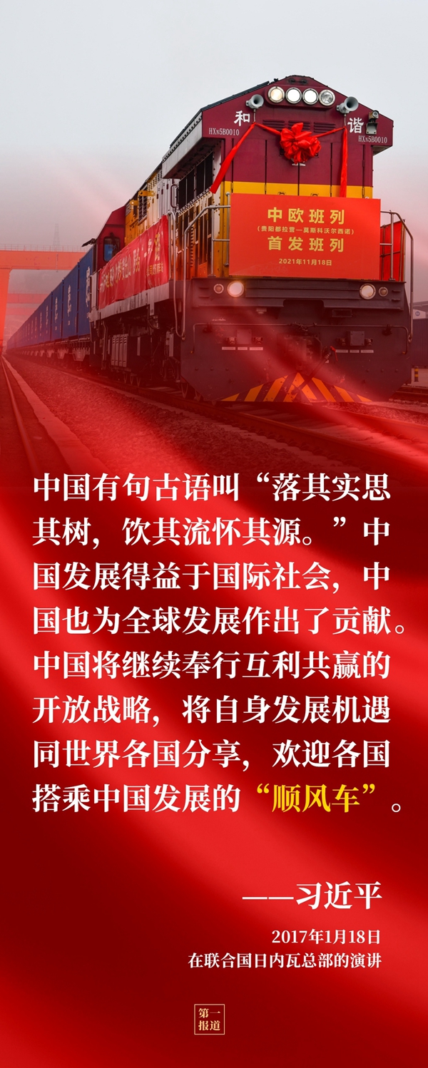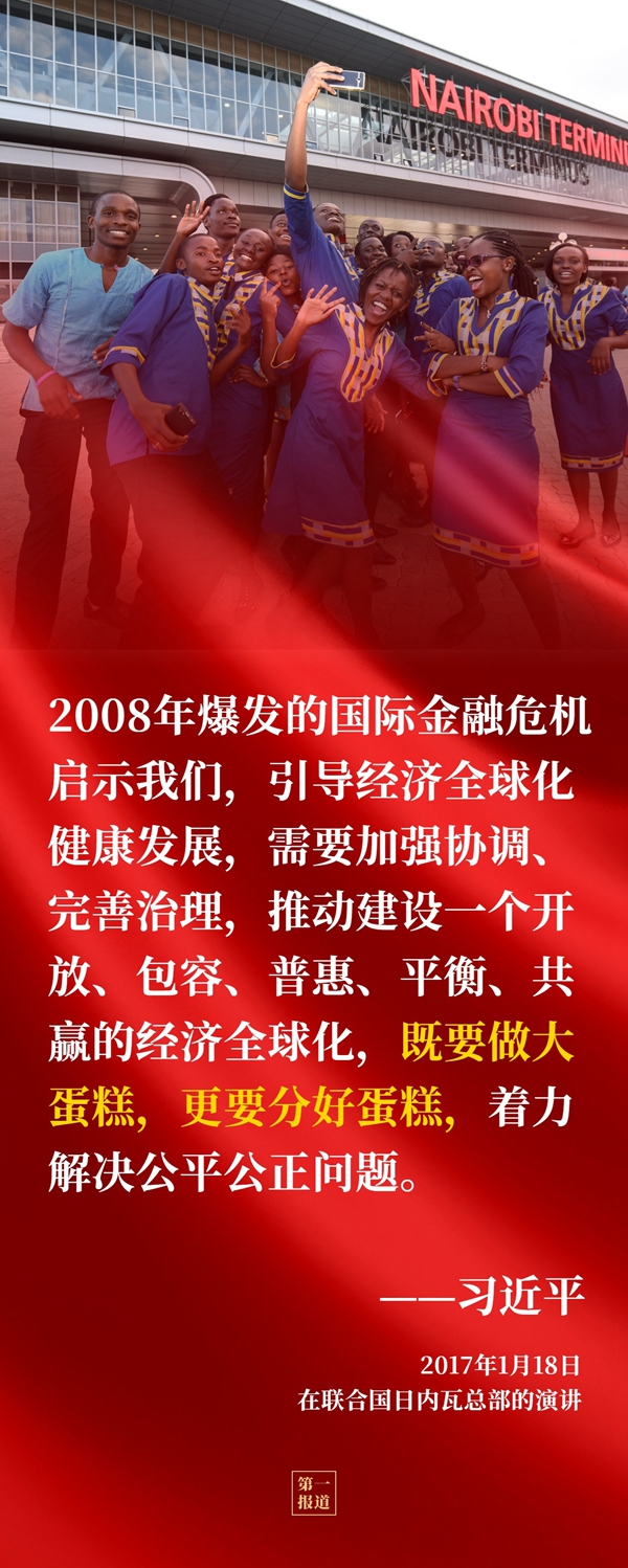 “在人類追求幸福的道路上,一個國家、一個民族都不能少!睆嫩`行互利共贏的開放戰(zhàn)略,到推動高質(zhì)量共建“一帶一路”,從深化國際減貧合作,到提出全球發(fā)展倡議,中國始終把自身命運與世界各國人民命運緊密相連,與世界共謀發(fā)展、并肩同行,向著構(gòu)建人類命運共同體的光明未來不斷邁進(jìn)。