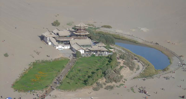 日益變小的月牙泉。舉世聞名的甘肅敦煌月牙泉在上世紀(jì)70年代占地22畝,水最深處達(dá)9米。由于地表水減少、地下水下降,月牙泉如今水面僅有8畝,水深不足3米。盡管當(dāng)?shù)卣扇《喾N措施進(jìn)行補(bǔ)救,效果不大。據(jù)有關(guān)專家介紹,如不采取更加有力措施進(jìn)行搶救,30年后月牙泉將面臨不復(fù)存在的危險(xiǎn)。