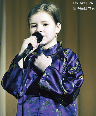 3月15日,第二屆莫斯科中小學生中國語言文化節(jié)在莫斯科的1259學校舉辦,來自莫斯科十幾所學校的中小學生參加了比賽和演出活動。圖為一個小女孩在莫斯科參加活動。新華社記者劉軼芳攝
