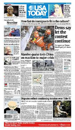 美國(guó)《今日美國(guó)報(bào)》頭版:大地震考驗(yàn)中國(guó)重大危機(jī)反應(yīng)