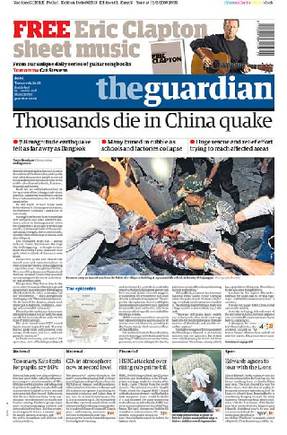 英國(guó)《衛(wèi)報(bào)》:中國(guó)大地震數(shù)千人遇難