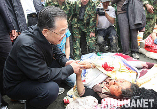 報(bào)道還說,在視察許多受到嚴(yán)重破壞的學(xué)校中的一所時(shí),溫家寶穿行于泥水、水泥碎塊和瓦礫堆之間,當(dāng)看到營救人員在努力挖掘兩名被困孩子時(shí)“熱淚盈眶”。