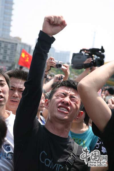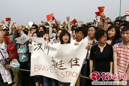 5月19日,民眾在天安門廣場高呼“中國加油”、“汶川挺住”等口號。環(huán)球時報記者張思揚攝
