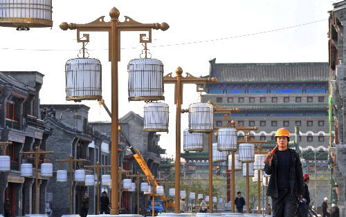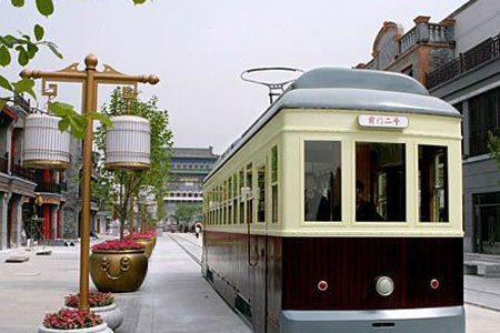 如果到游客們喜愛的琉璃廠古玩街參觀,也可能見到北京目前最神秘的建設工程:前門大街的復古改造。今后將在宏偉的前門城樓以南形成一條充滿中國特色的步行街。前門大街上還將開通有軌電車,首批車輛已經(jīng)開始試運行。而大街兩側(cè)的傳統(tǒng)木質(zhì)建筑則在為同樣具有傳統(tǒng)味的旅游項目做廣告。