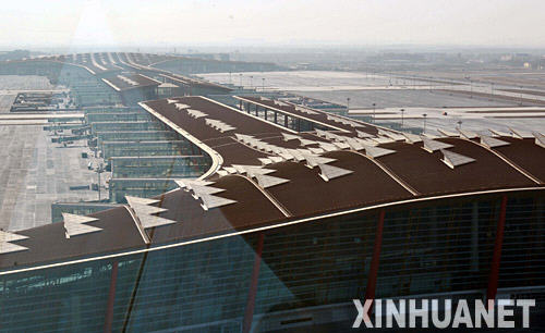 這是從塔臺(tái)上俯瞰首都機(jī)場(chǎng)三號(hào)航站樓(1月29日攝)。(新華社記者王建華攝)